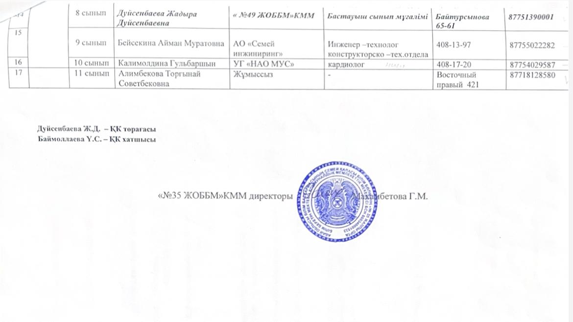 Қамқоршылық кеңес құрамы » Средняя общеобразовательная школа № 35