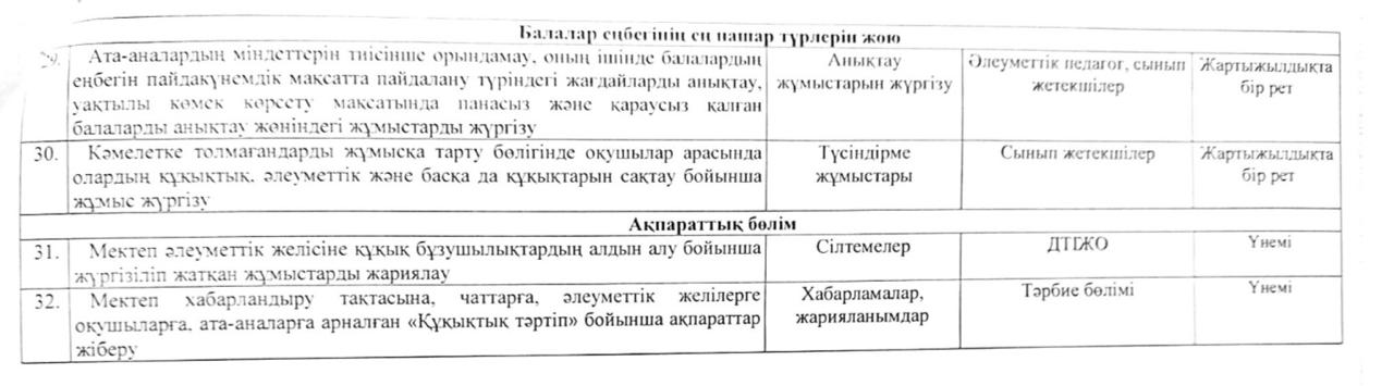 14 ноябрь 2025 2025–2026 оқу жылына арналған құқықбұзушылықтың, нашақорлықтың алдын алу және балалар қауіпсіздігін қамтамасыз ету жоспары