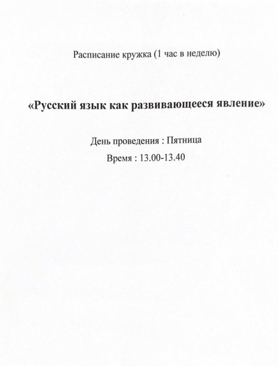 План работы кружка «Русский язык как развивающееся явление» » Средняя общеобразовательная школа № 35