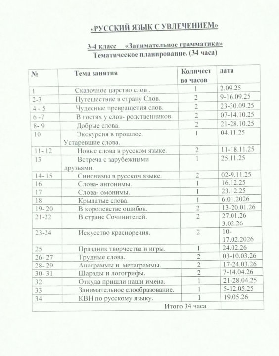 План кружковой работы по русскому языку «Занимательная грамматика» » Средняя общеобразовательная школа № 35