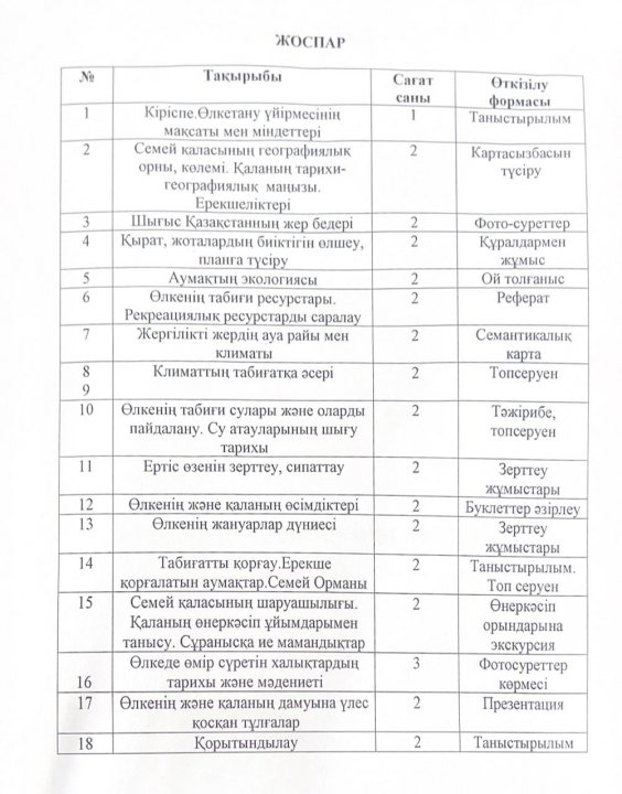 «Өлкетану» үйірмесінің жоспары » Средняя общеобразовательная школа № 35