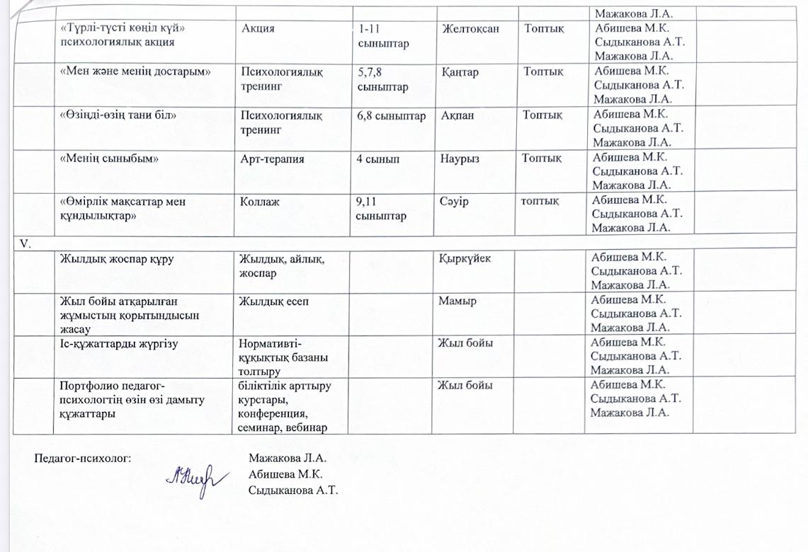 Педагог-психологтың 2025-2026 оқу жылына арналған жылдық жұмыс жоспары » Средняя общеобразовательная школа № 35