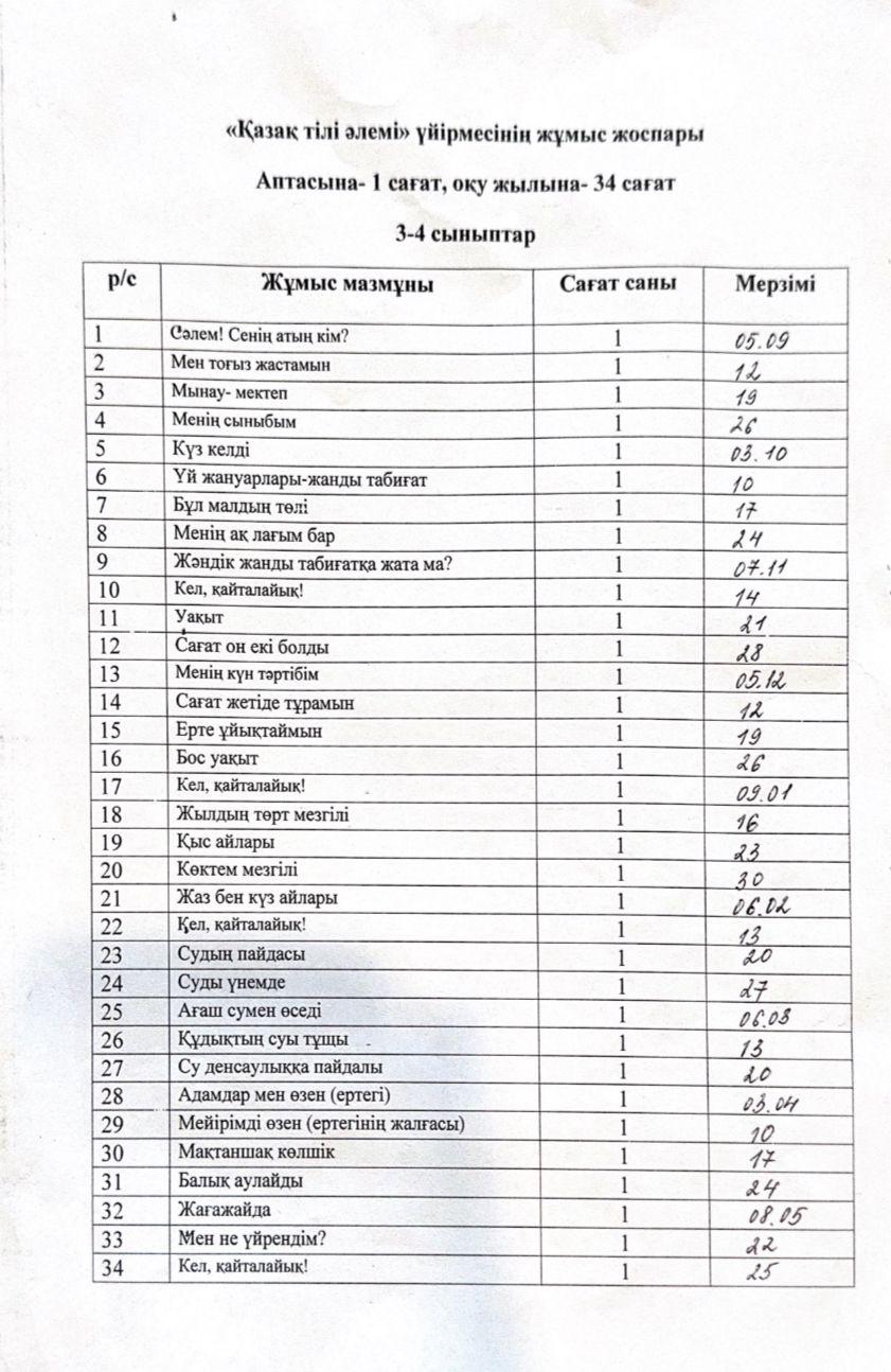 «Қазақ тілі әлемі» үйірмесінің жұмыс жоспары » Средняя общеобразовательная школа № 35