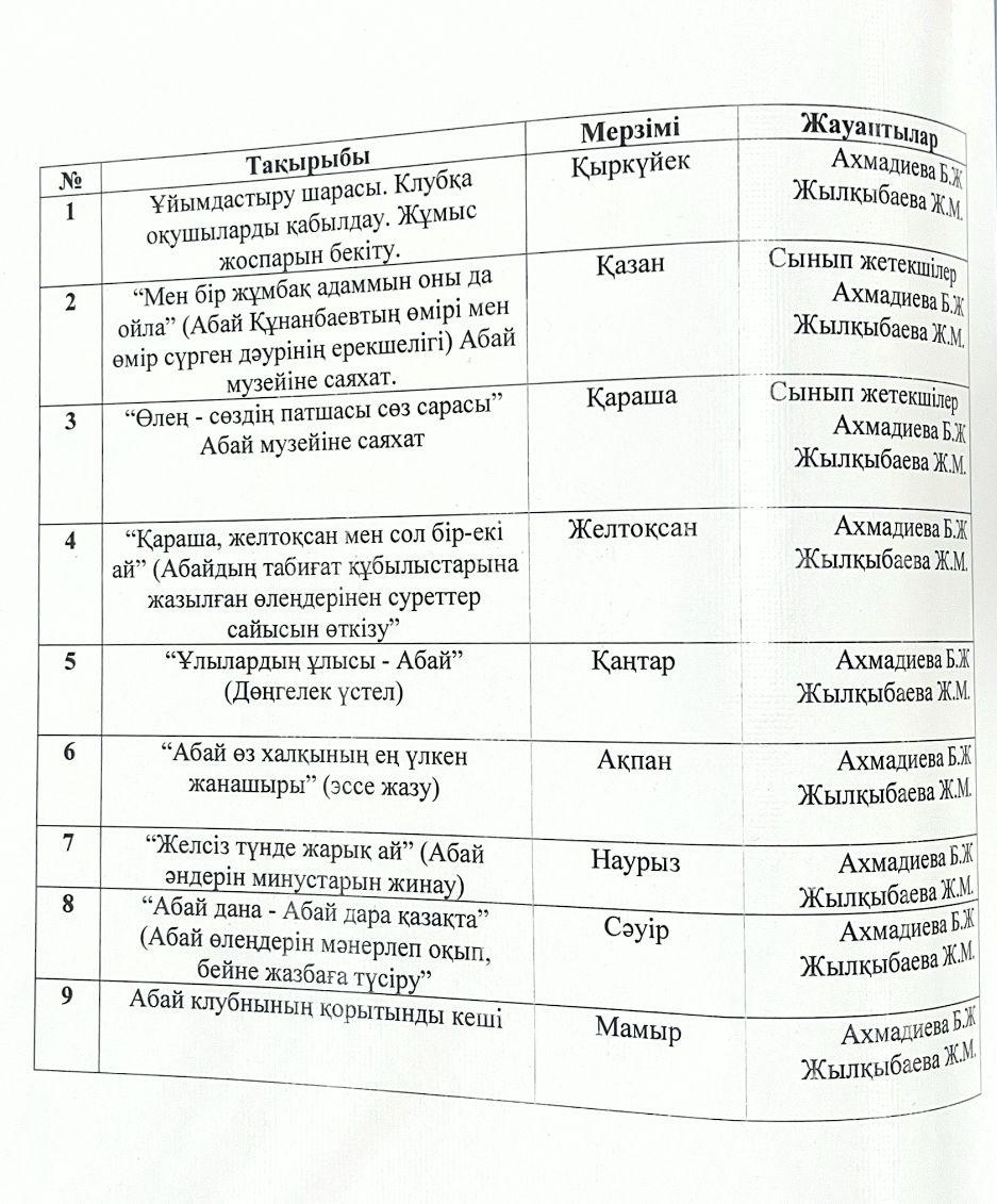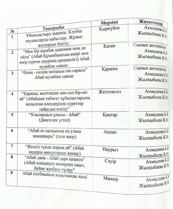 » » «Абай әлеміне саяхат» клубының тақырыптық - күнтізбелік жоспары