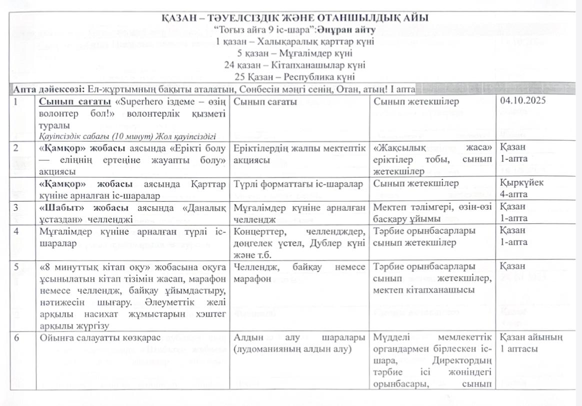 «Адал азамат» тәрбие бағдарламасы - Средняя общеобразовательная школа № 35 https://35-semey.edu.kz/ ru «Адал азамат» тәрбие бағдарламасы - Средняя общеобразовательная школа № 35 DataLife Engine 25 қазан - Республика күніне арналған іс-шаралар жоспары 2025-2026 оқу жылы https://35-semey.edu.kz/brttas-trbie/1527-25-azan-respublika-knne-arnalan-s-sharalar-zhospary-2025-2026-ou-zhyly.html https://35-semey.edu.kz/brttas-trbie/1527-25-azan-respublika-knne-arnalan-s-sharalar-zhospary-2025-2026-ou-zhyly.html ]]>  ]]> admin Fri, 07 Nov 2025 17:45:33 +0600 «Әкелер және аналар кеңесін» құру туралы бұйрық https://35-semey.edu.kz/brttas-trbie/1526-keler-zhne-analar-keesn-ru-turaly-bjry.html https://35-semey.edu.kz/brttas-trbie/1526-keler-zhne-analar-keesn-ru-turaly-bjry.html ]]>  ]]> admin Fri, 07 Nov 2025 17:43:41 +0600 2025-2026 оқу жылындағы тәрбие жұмысы: айлық тақырыптар мен дәйексөздер https://35-semey.edu.kz/brttas-trbie/1525-2025-2026-ou-zhylynday-trbie-zhmysy-ajly-tayryptar-men-djekszder.html https://35-semey.edu.kz/brttas-trbie/1525-2025-2026-ou-zhylynday-trbie-zhmysy-ajly-tayryptar-men-djekszder.html ]]>  ]]> admin Fri, 07 Nov 2025 17:39:44 +0600 «Абайды оқу, таңырқа!» акциясының жоспары https://35-semey.edu.kz/brttas-trbie/1524-abajdy-ou-tayra-akcijasyny-zhospary.html https://35-semey.edu.kz/brttas-trbie/1524-abajdy-ou-tayra-akcijasyny-zhospary.html ]]>  ]]> admin Fri, 07 Nov 2025 17:31:23 +0600 «Отбасы-тәрбиенің алтын бесігі» халықаралық отбасы күніне арналған жоспар https://35-semey.edu.kz/brttas-trbie/1523-otbasy-trbien-altyn-besg-halyaraly-otbasy-knne-arnalan-zhospar.html https://35-semey.edu.kz/brttas-trbie/1523-otbasy-trbien-altyn-besg-halyaraly-otbasy-knne-arnalan-zhospar.html ]]>  ]]> admin Fri, 07 Nov 2025 17:22:51 +0600 «№35 ЖОББМ» КММ «Тілім менің ғасырларға аманат» атты тілдер мерекесіне құрылған жоспар https://35-semey.edu.kz/brttas-trbie/1522-35-zhobbm-kmm-tlm-men-asyrlara-amanat-atty-tlder-merekesne-rylan-zhospar.html https://35-semey.edu.kz/brttas-trbie/1522-35-zhobbm-kmm-tlm-men-asyrlara-amanat-atty-tlder-merekesne-rylan-zhospar.html ]]>  ]]> admin Fri, 07 Nov 2025 17:17:53 +0600 Апта күндерін өткізу бойынша ұсыным https://35-semey.edu.kz/brttas-trbie/1521-apta-kndern-tkzu-bojynsha-synym.html https://35-semey.edu.kz/brttas-trbie/1521-apta-kndern-tkzu-bojynsha-synym.html ]]>  ]]> admin Fri, 07 Nov 2025 17:08:47 +0600 «№35 жалпы орта білім беретін мектеп» КММ «Адал азамат» бағдарламасына сәйкес тәрбие жұмысының жылдық жоспары https://35-semey.edu.kz/brttas-trbie/1516-35-zhalpy-orta-blm-beretn-mektep-kmm-adal-azamat-badarlamasyna-sjkes-trbie-zhmysyny-zhyldy-zhospary.html https://35-semey.edu.kz/brttas-trbie/1516-35-zhalpy-orta-blm-beretn-mektep-kmm-adal-azamat-badarlamasyna-sjkes-trbie-zhmysyny-zhyldy-zhospary.html