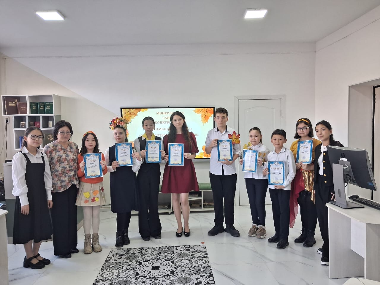 17 ноября в "КГУ СОШ 35" прошёл конкурс чтецов "Осень,сотканная из стихов".Учащиеся 5-8 классов читали наизусть стихи поэтов об осени.Цель данного конкурса:развить у детей навыки выразительного чтения,любовь к поэзии и природе.
